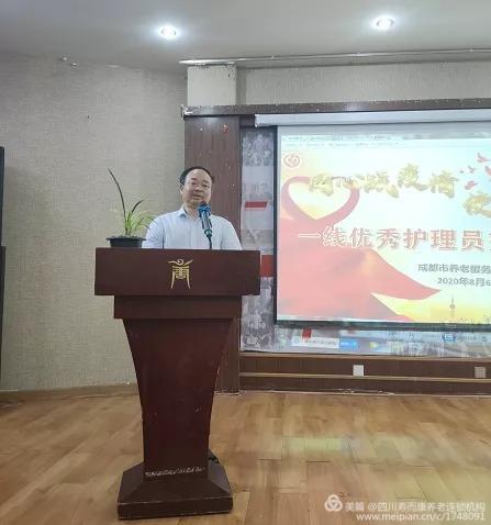 首先,成都市養老服務(wù)業(yè)協(xié)會(huì )會(huì )長(cháng)黃再軍發(fā)表了熱情洋溢的講話(huà),向疫情期間,為了養老事業(yè)而作出自我犧牲的護理員們表示感謝,鼓勵護理員們繼續發(fā)揚不怕?tīng)奚木?,為了老人的安全繼續把抗擊疫情工作做好。