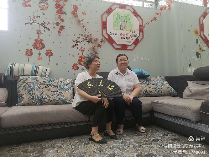 2021年7月2日,成都《孝行天下》雜志社主編黃銀燕女士,來(lái)到壽而康馨悅園,參觀(guān)、感受認知障礙老人的一天日常。