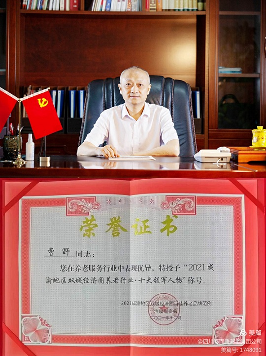 熱烈祝賀四川壽而康養老服務(wù)有限公司董事長(cháng)兼總裁曹野先生,榮獲“2021成渝地區雙城經(jīng)濟圈十大養老領(lǐng)軍人物”稱(chēng)號!熱烈祝賀四川壽而康養老服務(wù)有限公司,榮獲“2021成渝地區雙城經(jīng)濟圈十佳養老機構”稱(chēng)號!