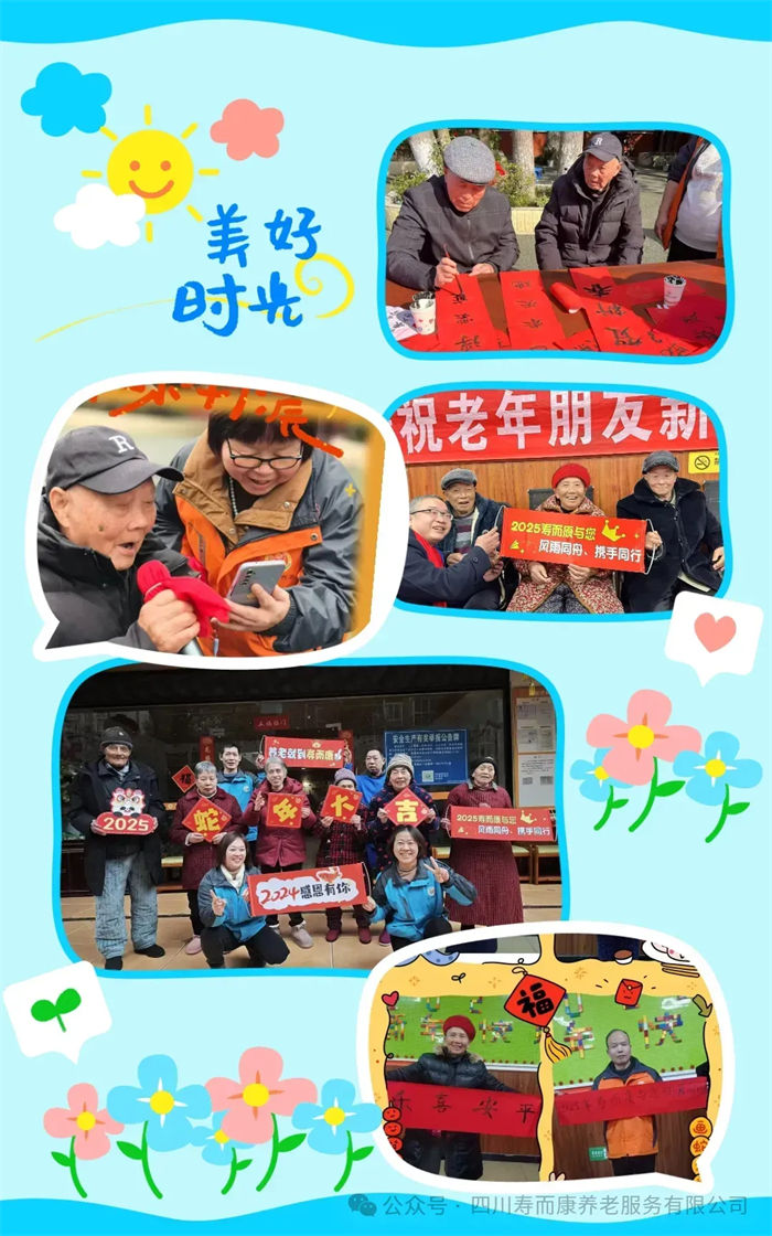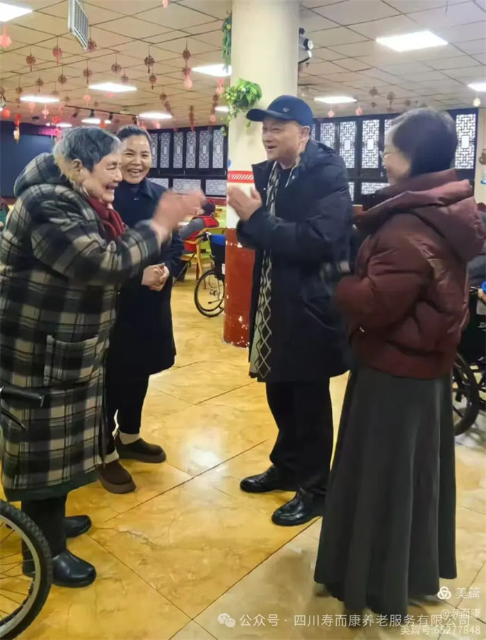 金龍辭舊歲,蛇年舞新春。在這辭舊迎新的美好時(shí)刻,壽而康旗下成都、重慶、宜賓、南充四大片區的每一個(gè)養老院、敬老院都洋溢著(zhù)濃濃的年味,仿佛整個(gè)世界都被這份喜悅所感染。而這一切,都始于公司董事長(cháng)曹野先生在年度總結會(huì )上那句溫暖而堅定的承諾:“一定要陪伴好住養在我們壽而康各養老機構的老人,千方百計讓他們度過(guò)一個(gè)祥和開(kāi)心的新春佳節?!边@句承諾,如同一盞明燈,照亮了整個(gè)蛇年新春,也溫暖了每一位老人和員工的心。公司董事會(huì )、總經(jīng)辦統一部署,精心籌劃“春節八天樂(lè )”活動(dòng),員工們積極響應,用心籌備,只為給老人難忘新春。新年鐘聲敲響,祝福彌漫空氣。養老院、敬老院內紅燈高掛,喜慶祥和,溫馨滿(mǎn)溢。此非僅春節之慶,更是溫暖陪伴之諾的兌現。