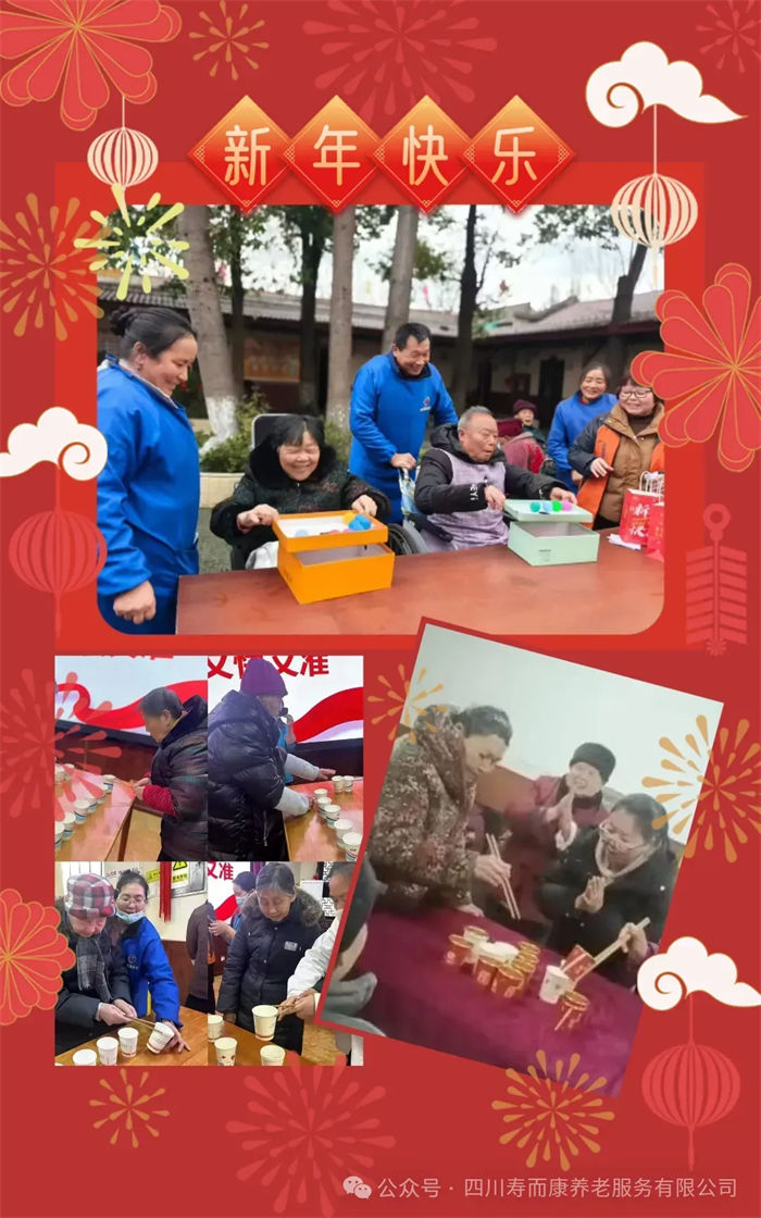 從初一到初七,甜蜜與歡樂(lè )充盈每一天。初一,熱騰騰的湯圓上桌,寓意團圓甜蜜。隨后幾日,各院的春節游園活動(dòng)精彩紛呈:蒙眼猜盲盒、唱紅歌、夾杯子、乒乓球游戲等,老人們積極參與,智慧與熱情并存,現場(chǎng)氣氛熱烈。初七,新年寄語(yǔ)活動(dòng)溫情延續,員工橫幅上滿(mǎn)載對老人的祝福與感激,滾可樂(lè )蛇年大吉游戲更添驚喜歡樂(lè ),老人們歡呼雀躍,整個(gè)春節洋溢著(zhù)溫暖與喜悅。