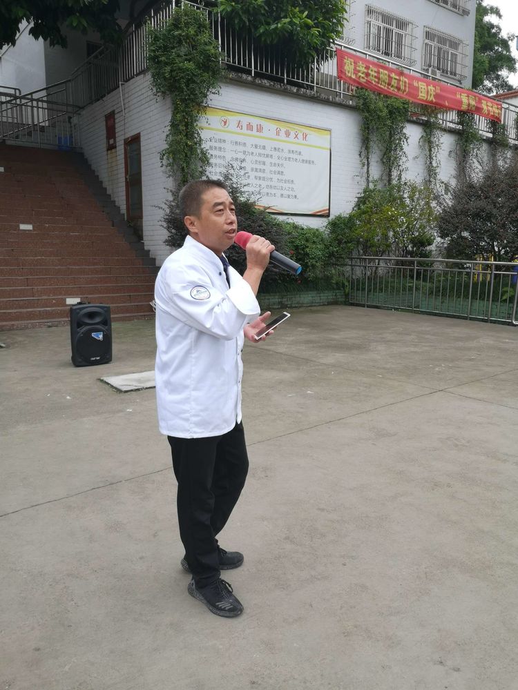 廚師抑制不住感恩之情,自告奮勇上臺,為老人們獻歌一曲。