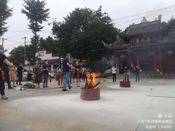 火警就是命令!全體參會(huì )人員積極行動(dòng)起來(lái),手提滅火器材,撲向起火點(diǎn),進(jìn)行實(shí)操演練。(演練現場(chǎng):武侯區壽而康老年頤養中心廣場(chǎng))